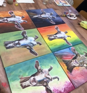 Nachdem das Projekt „Teampainting“ beendet wurde, kann das gemeinsame Werk sichtbar die Wände Ihres Unternehmens schmücken. Ihr Unternehmen findet keinen Platz an den Wänden? Schaffen Sie auch nach dem Workshop eine kreative Phase und versteigern Sie das Kunstwerk für einen guten Zweck. Natürlich kann aber auch jeder Mitarbeiter (Kurs „Ypsilon“) sein Bild als Erinnerung mit nach Hause nehmen.